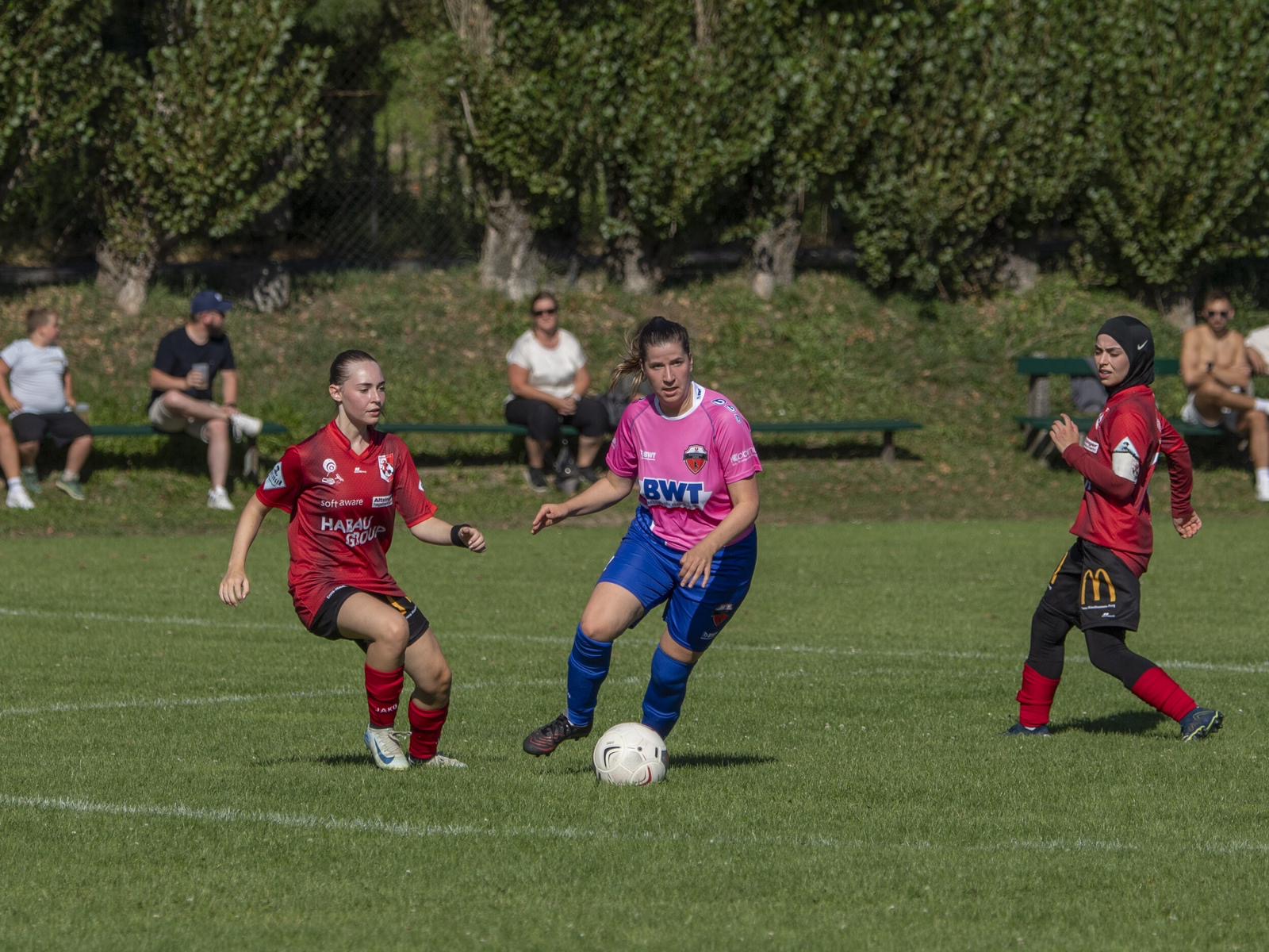 Leider gelang es an diesem heißen letzten Augusttag nicht, das Match unter Kontrolle zu bekommen. Oft war es der eine Schritt, den wir zu spät gekommen sind, manchmal war es der fehlende Wille oder der Pass, der zu ungenau ausfiel. Somit musste man Ball und Gegnerinnen meist hinterherlaufen.