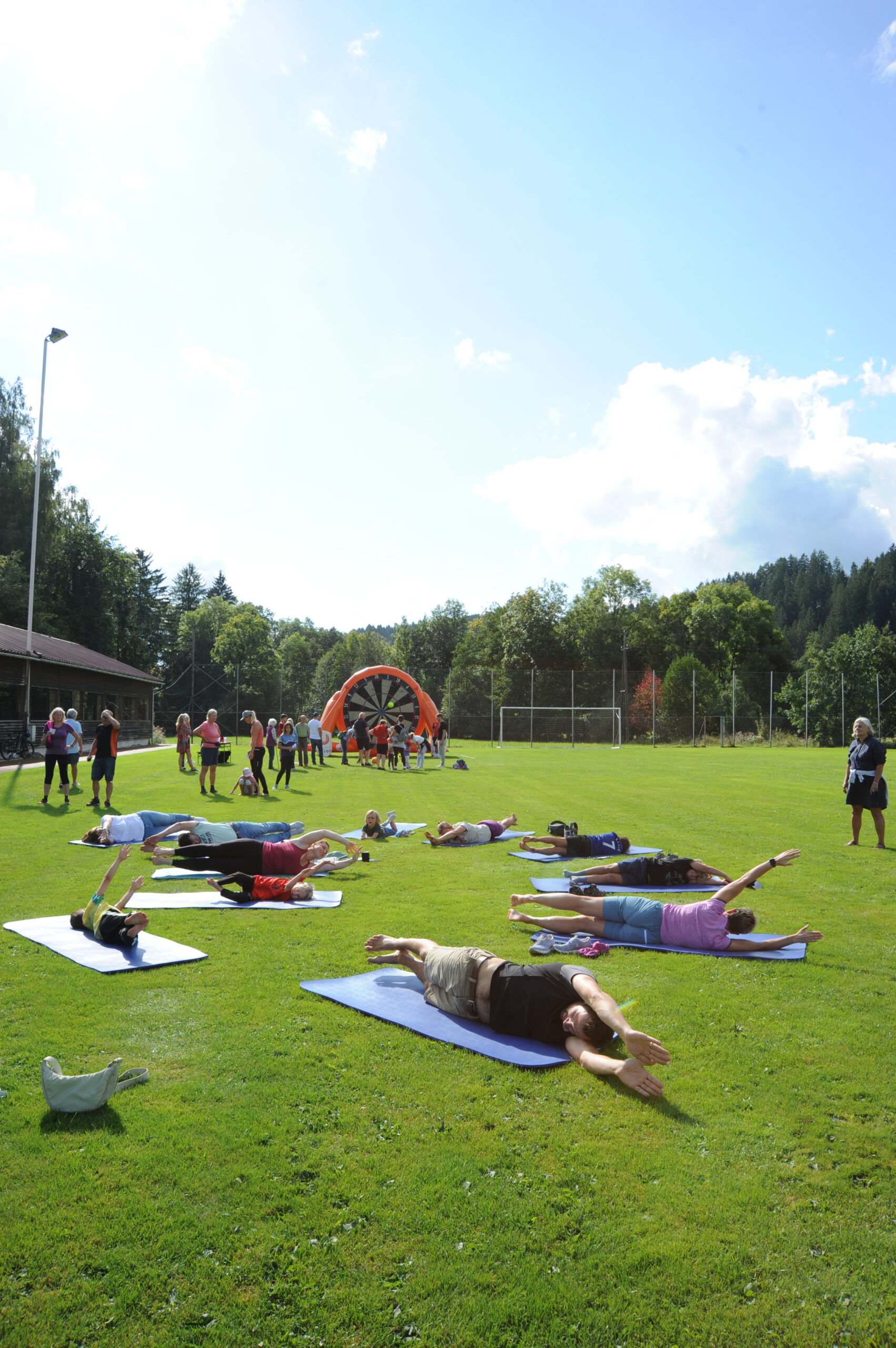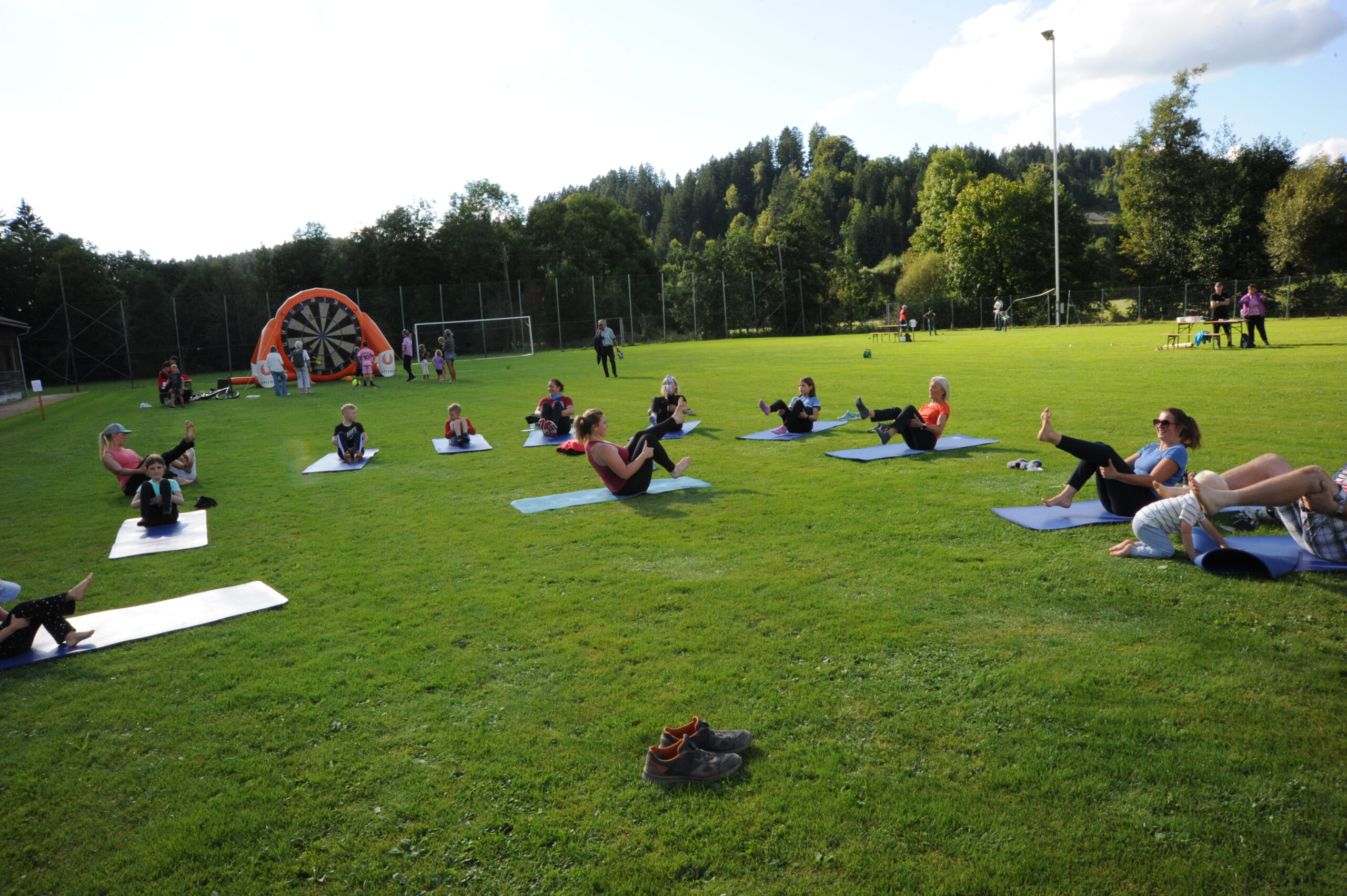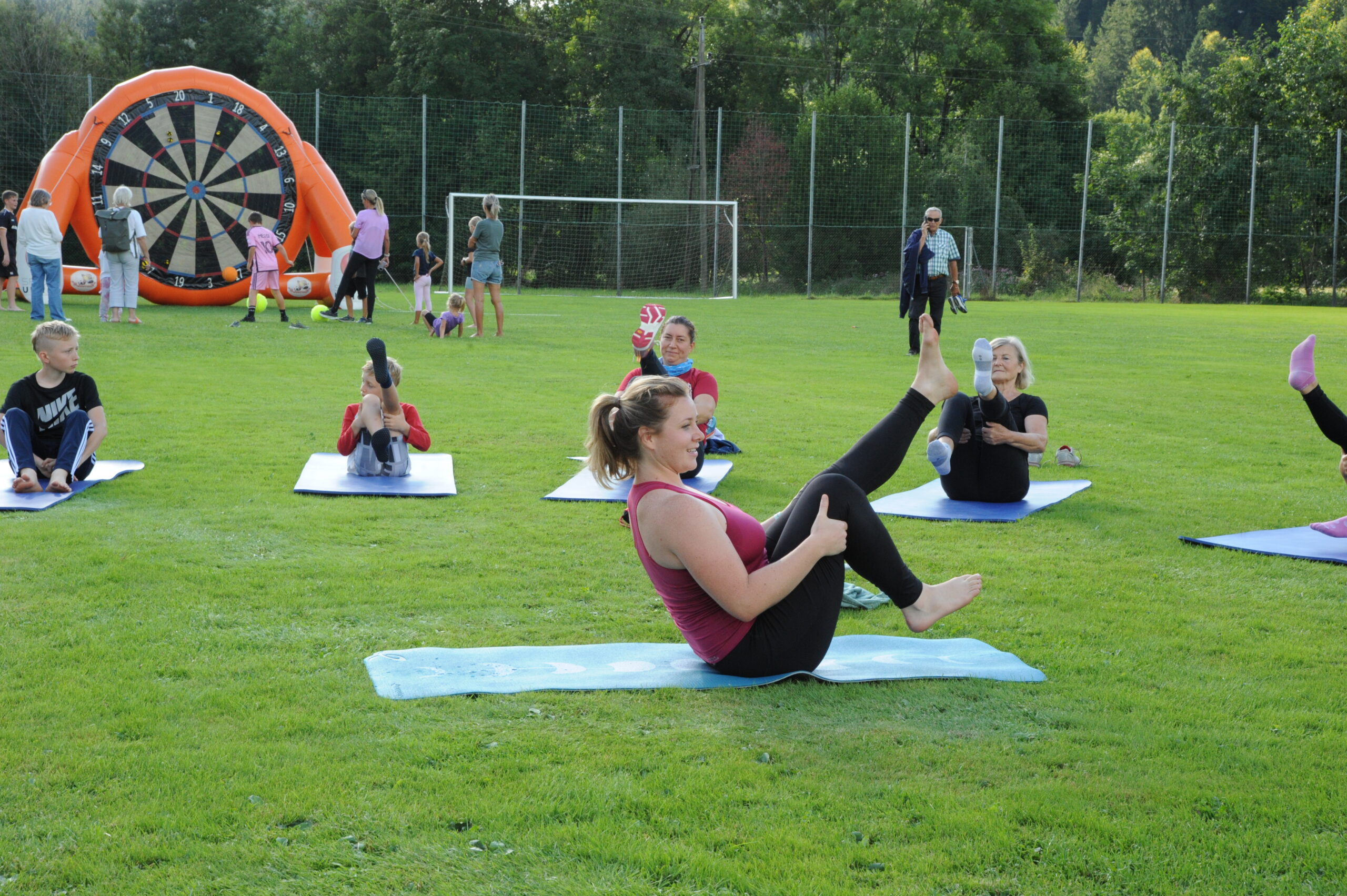 Bei strahlendem Wetter fanden sich zahlreiche Besucher:innen aller Altersgruppen ein, um die insgesamt 12 Stationen zu absolvieren. Ob beim Soccerdart, auf dem riesigen Airtrack oder mit der „Rauschbrille“ – Spaß und Bewegung standen klar im Vordergrund. Auch Angebote wie Pilates, „Fit mit Gabi & Roland“ oder Hula Hoop luden zum Mitmachen ein. Beim Weitsprung, Heulerwurf und 60 m Sprint konnte man außerdem sein Leichtathletik-Talent testen. Beim Lattlschießen und Latteln konnte man die Zielgenauigkeit unter Beweis stellen. Die Gesundheitsstation vom Roten Kreuz ergänzte das sportliche Programm.