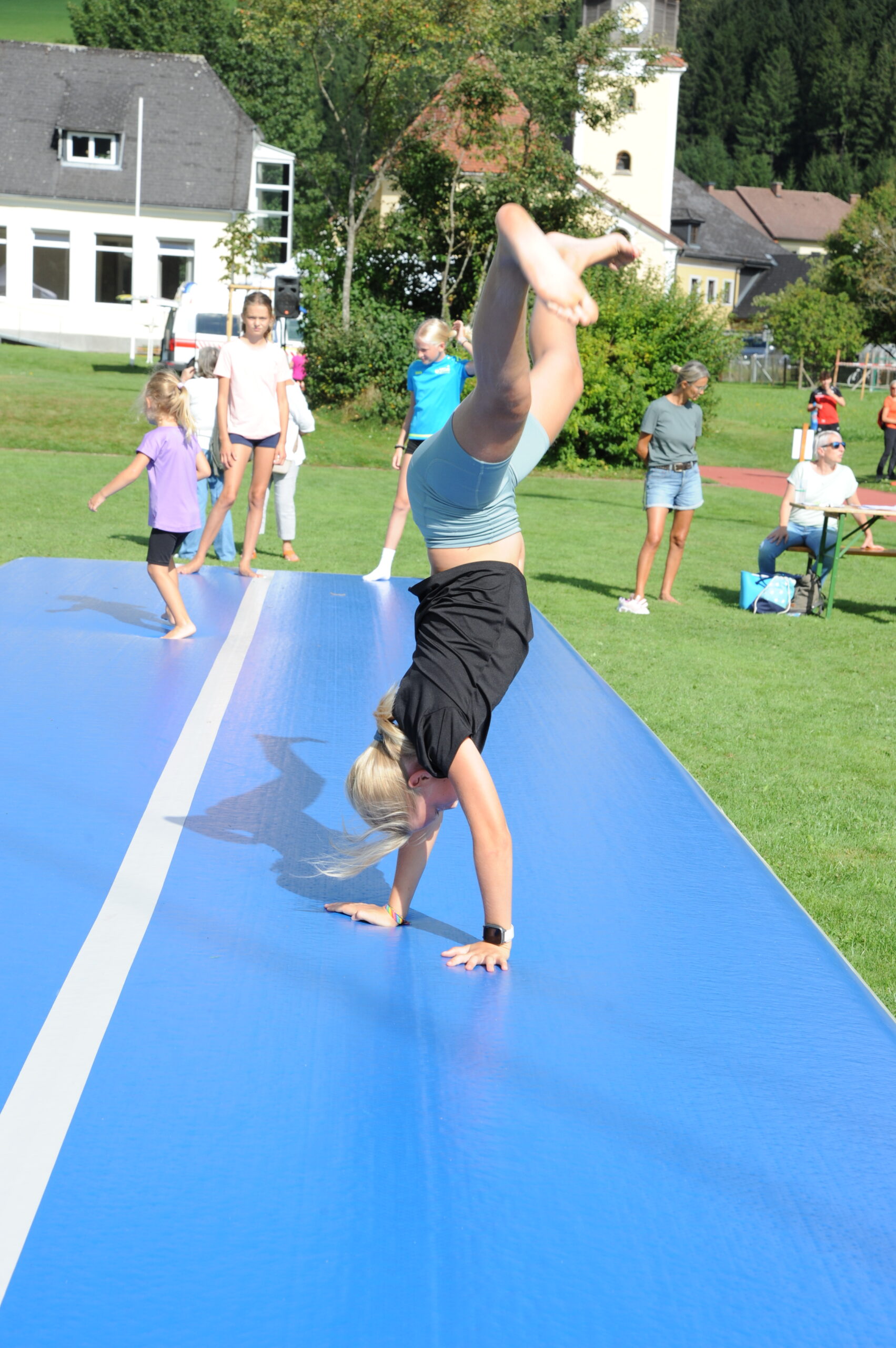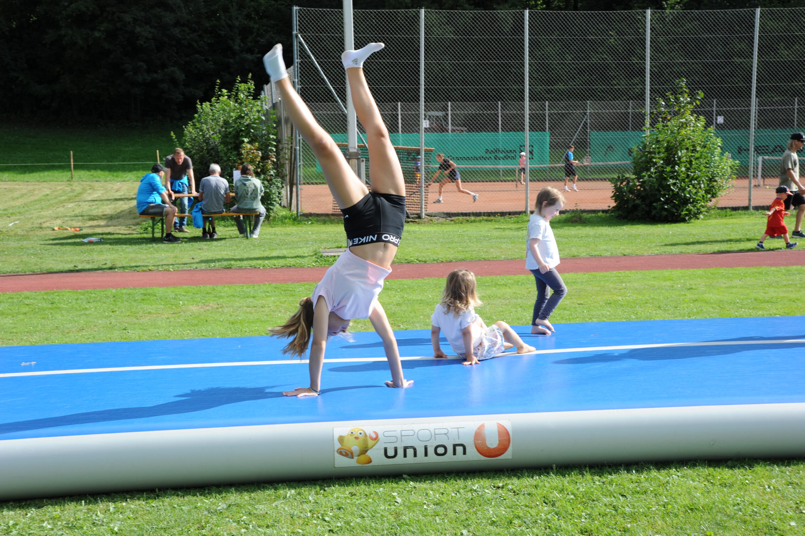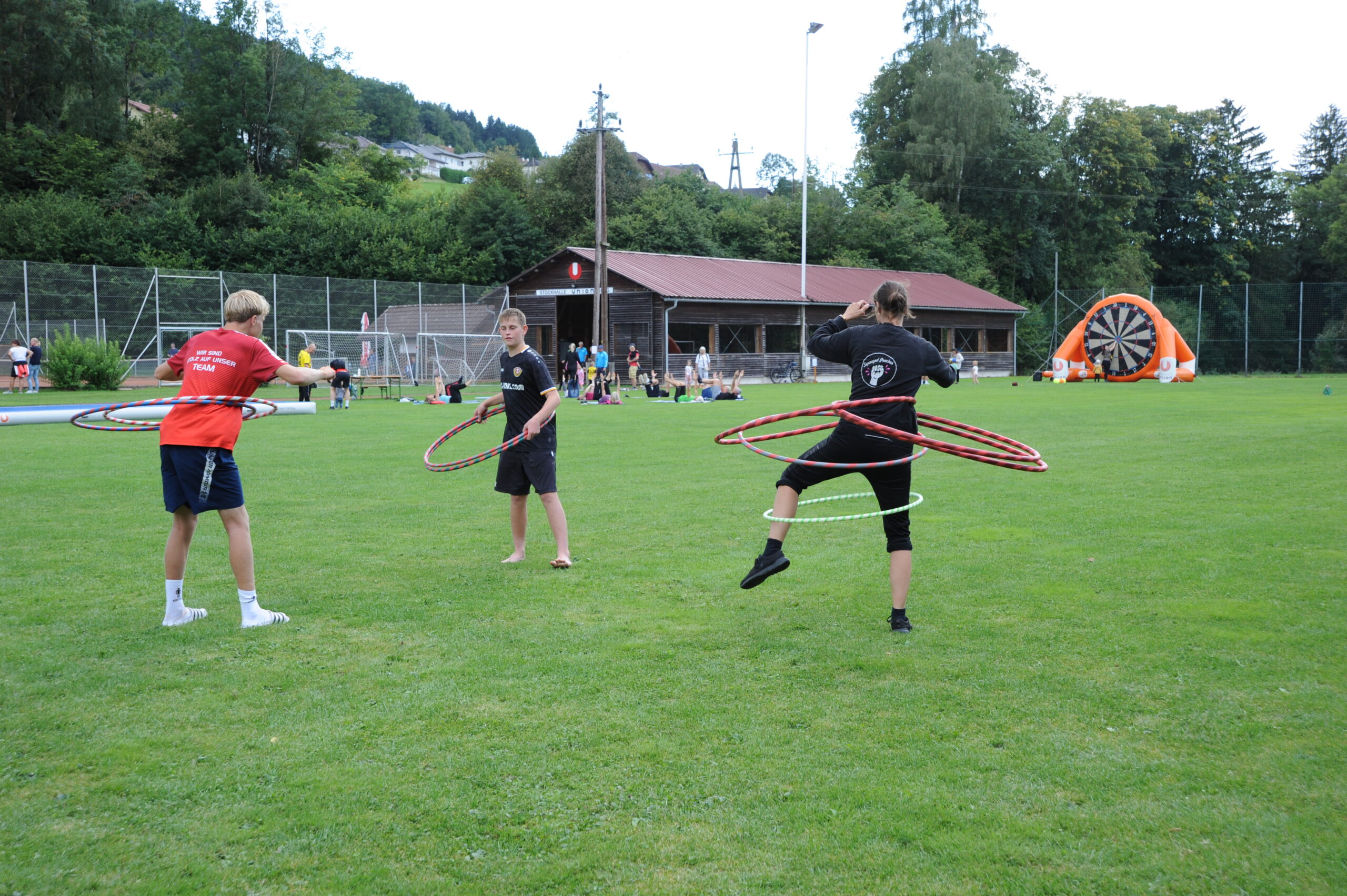Bei strahlendem Wetter fanden sich zahlreiche Besucher:innen aller Altersgruppen ein, um die insgesamt 12 Stationen zu absolvieren. Ob beim Soccerdart, auf dem riesigen Airtrack oder mit der „Rauschbrille“ – Spaß und Bewegung standen klar im Vordergrund. Auch Angebote wie Pilates, „Fit mit Gabi & Roland“ oder Hula Hoop luden zum Mitmachen ein. Beim Weitsprung, Heulerwurf und 60 m Sprint konnte man außerdem sein Leichtathletik-Talent testen. Beim Lattlschießen und Latteln konnte man die Zielgenauigkeit unter Beweis stellen. Die Gesundheitsstation vom Roten Kreuz ergänzte das sportliche Programm.