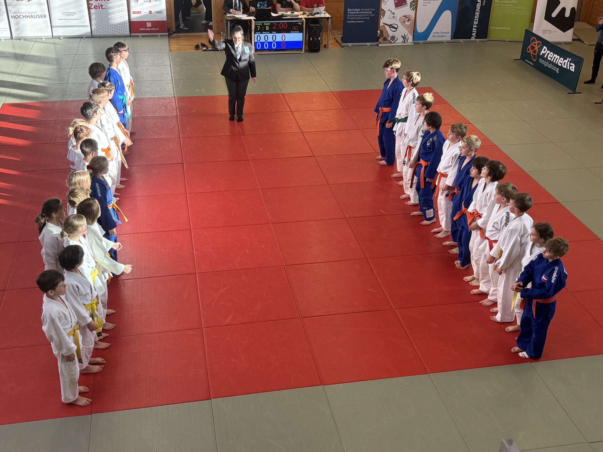 Die Schüler in der jeweiligen Alters- und Gewichtsklasse treten gegeneinander an. UJZ Mühlviertel siegte mit 7 : 9.