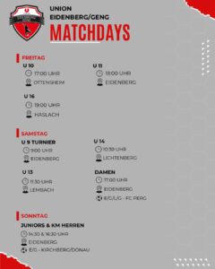Der Nachwuchs startet in den Frühling – und so ist dieses Mal unsere Spielankündigung prall gefüllt. An allen drei Tagen herrscht Hochbetrieb. Am Samstag dürfen wir uns ganz besonders auf das U9-Turnier in Eidenberg freuen. Wer die jungen Talente unterstützen will, ist ab 9:00 Uhr herzlich willkommen. Unsere Damen treffen in dieser Runde zuhause auf den FC Perg, unsere Herren bekommen es am Sonntag auf heimischer Anlage mit Kirchberg zu tun.